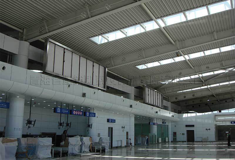 7.本工程采用散熱器和球形噴口送熱風(fēng)的采暖形式。通風(fēng)在侯機室和主要房間內(nèi)設(shè)新風(fēng)換氣機組,充分考慮了熱量回收,減少能耗,使航站樓成為節(jié)能建筑。